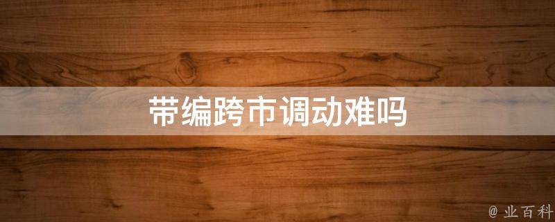 最佳答案带编跨市调动难。一般情况下,事业单位跨市调动首先要有单位同意接收,然后征求本单位同意和当地人社、编制管理部门同意后,才可以进行调动。跨地区调动一般是商调,在同性质及以下单位调动,原行政单位的可以调行政单位或事业单位,原事业单位调事业或企业单位。