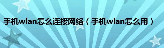 手机wlan怎么连接网络(手机wlan怎么用)