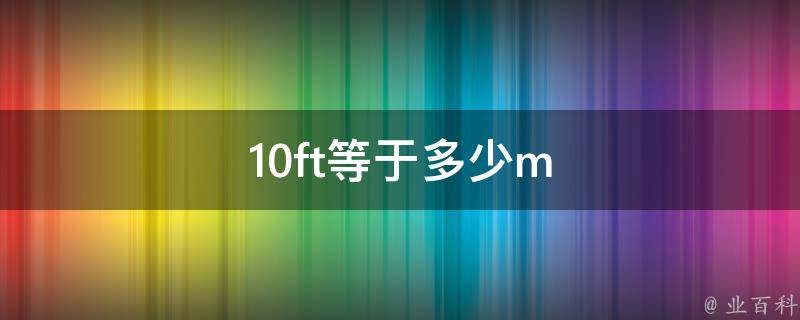 最佳答案10ft等于3.048m。根据查询长度换算单位得知,1英尺(ft)=0.3048米,通过计算:10*0.3048=3.048m,所以是等于3.048米。ft即英尺,现今美国、利比里亚及缅甸也使用。