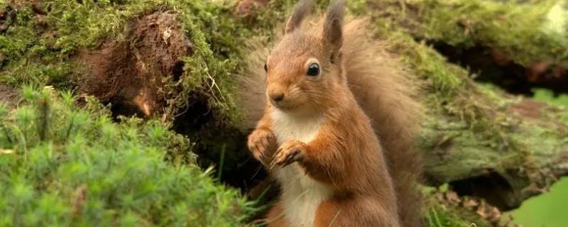 松鼠的叫声可以形容为高亢而尖细的咯咯声,或者尖锐而短促的吱吱声。叫声通常具有一种活泼、欢快的特点,有时候也会带有一些警戒或威胁的意味。松鼠是杂食动物,吃多种植物,包括坚果、种子、松球、水果、菌类和绿色植物,也吃昆虫。