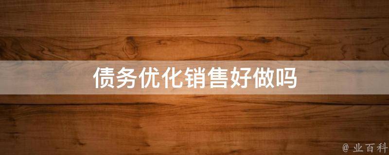 债务优化销售好做吗