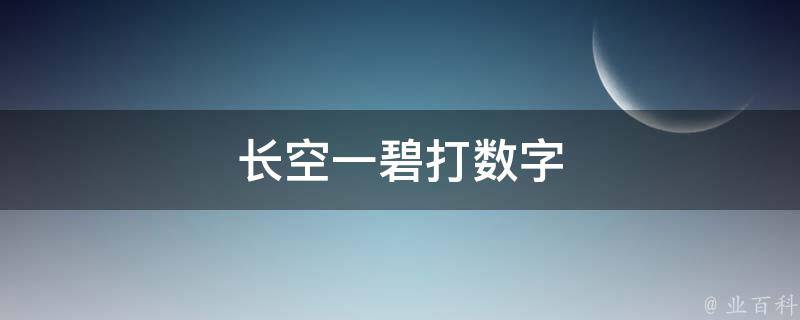 最佳答案长空一碧打数字是1。因为长空一碧中包含数字1,所以,长空一碧打数字就是1。在数字谐音中,1代表唯一、你、起点,另外,0代表圆满、完美、无尽;2代表爱、两人世界;3代表想念、生命、生活;4代表是的、时时等。