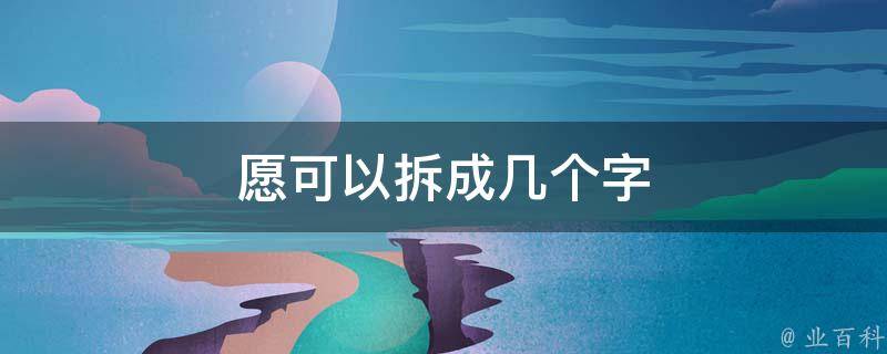 愿字可以拆成7个字,分别是:一、厂、白、日、小、心、原。愿是汉语通用规范一级汉字(常用字)。愿的本义指大头,常用义为希望、愿望。还表示乐意、想要,作动词用。又引申为心愿。