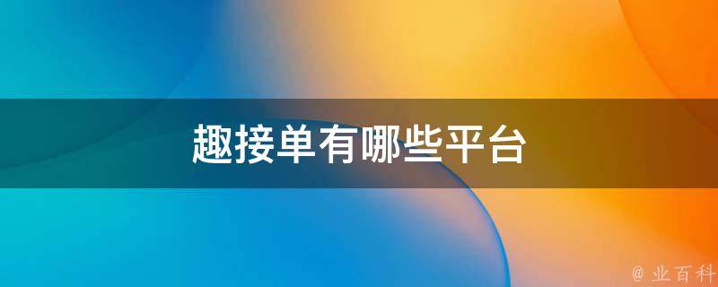 趣接单的平台包括美团外卖、饿了么、百度外卖、口碑外卖、达达配送、顺丰同城急送、菜鸟裹裹、京东到家、淘宝美食、苏宁易购以及自营平台订单等在内的多个平台的订单。需要注意,具体使用趣接单接哪些平台的订单,可能会受到该软件更新、合作平台调整等因素的影响,建议直接联系趣接单客服获取最准确的信息。