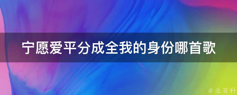 宁愿爱平分成全我的身份是歌曲《我的身份》里的歌词,下一句是:用我的余生,抚慰你的心瘾。《我的身份》是由罗白作词,姜雨涵作曲,DJ阿本编曲、混音,何仟仟演唱的歌曲,OP是橘灿文化,收录在专辑《我的身份》里。