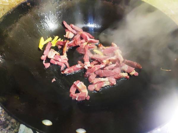 5、起锅热油,下入姜丝爆一下。