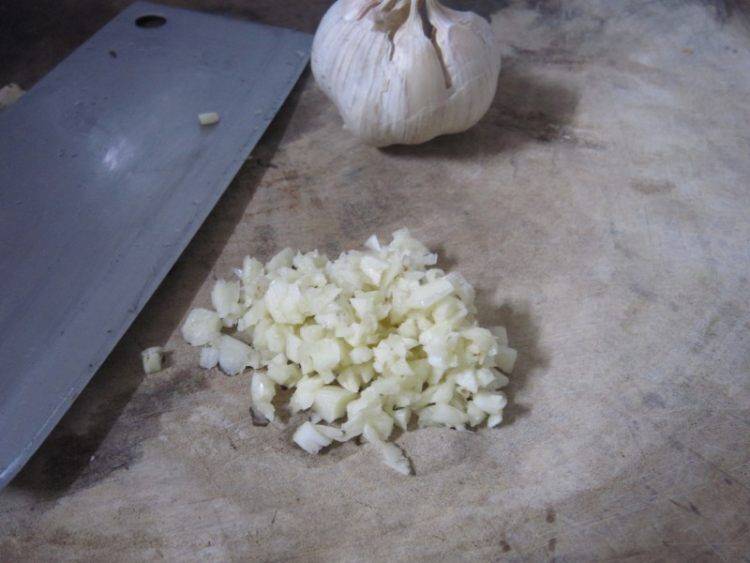 3、蒜瓣剁成末备用。