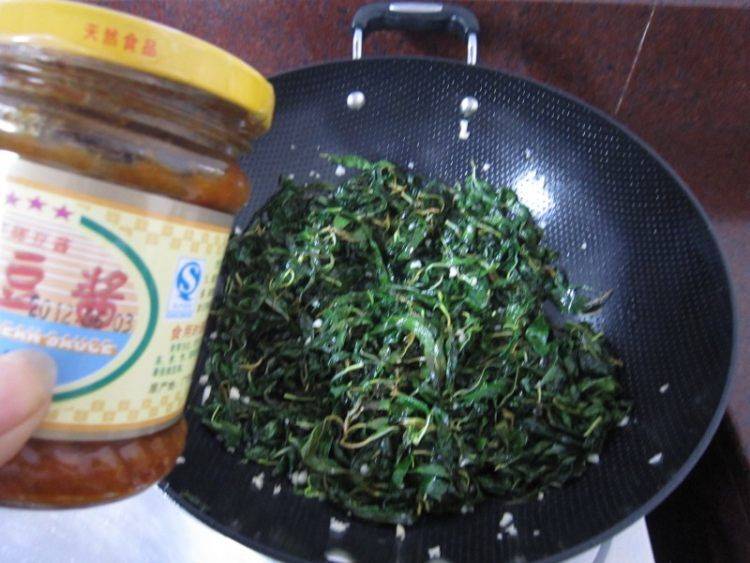 10、加入普宁豆酱炒拌均匀即可。