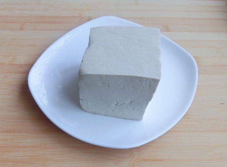 4、放入加了少许盐的沸水中汆一下,去除豆腥味,捞出用清水浸泡。