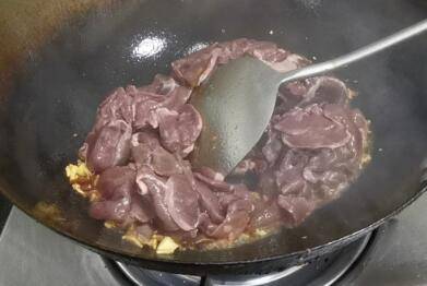牛心切片,加入锅里翻炒。