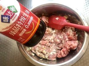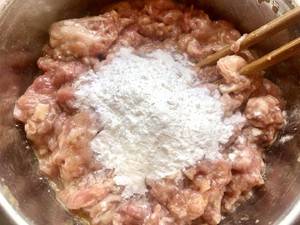 4、加入鸡蛋、料酒、生抽、原汁酱油,少许多次加清水搅拌到粘稠状态。