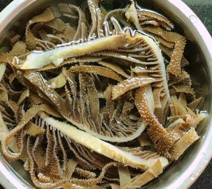 将牛百叶用清水浸泡半小时,稀释掉多余的碱水。