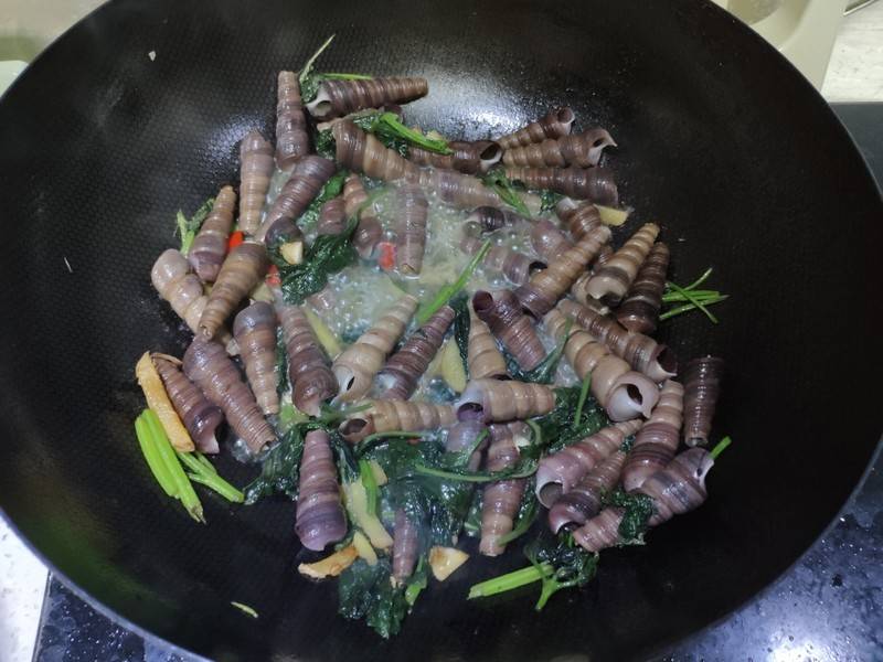 最佳答案用料:锥螺500克、紫苏叶20片、姜适量、酱油1克、盐适量、红辣椒1个、植物油适量、蒜1瓣。做法:1、新鲜的锥螺,用清水刷洗干净。2、把螺尾部尖尖的部位剪掉一截。3、锅中放少许油烧热,加入切好的蒜、姜丝、辣椒翻炒一下,放入锥螺翻炒。放盐和紫苏叶,翻炒均匀。4、从锅边淋入少许清水,盖上锅盖...