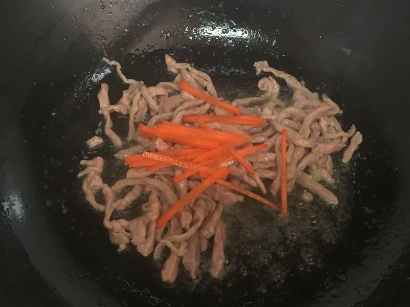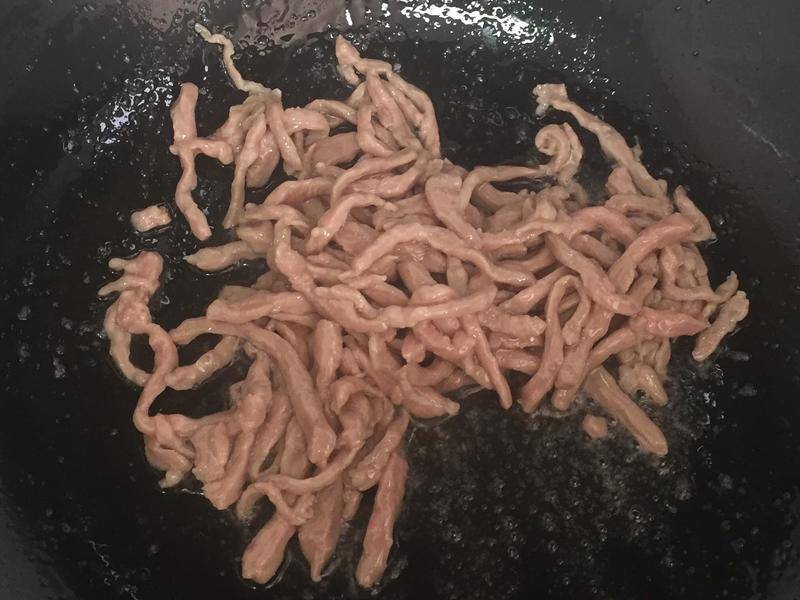 3、放入肉丝。