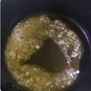 4.熬到开始出现小气泡时,立即加入冷水,注意盖锅盖。