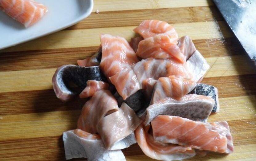 主料:三文鱼250克、大葱1根、盐1茶匙、鸡蛋清1个、黑胡椒1茶匙、生抽1茶匙、大蒜3瓣、柠檬汁1茶匙、青红尖椒4个、植物油3汤匙。