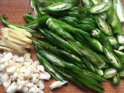 起锅热油,倒入生姜、蒜末、辣椒煸香。