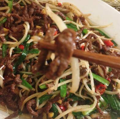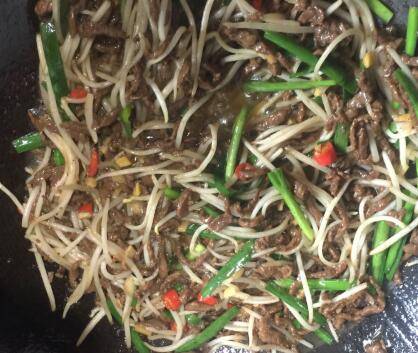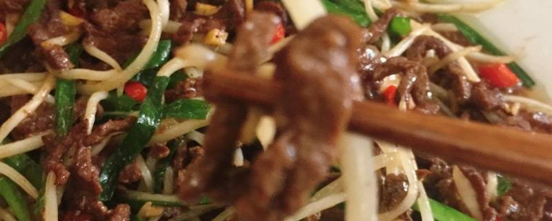 最佳答案牛肉220g、绿豆芽150g、韭菜10棵、小米椒4个、生姜一小块、大蒜两头、生抽适量、老抽适量、白糖适量、生粉适量、油适量、黑胡椒适量、盐适量。豆芽两头摘掉,牛肉逆向纹路切丝。放入半勺老抽、半勺生抽、一勺油、少许黑胡椒粉、少许白糖、半勺生粉和少许白酒,腌制半小时。锅中倒入油烧热,放入大蒜...