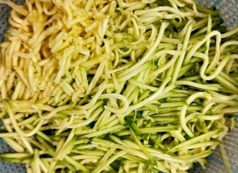 2、切成丝,或是用刨丝刀刨成南瓜丝。