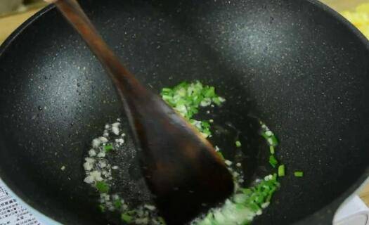4、加少许油炒香蒜末和葱花。