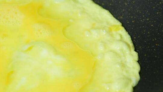 2、油温5成热时倒入蛋液。