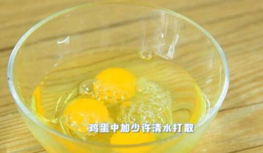 1、鸡蛋中加少许清水打散。