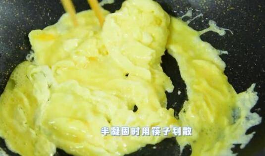 3、半凝固时用筷子划散,然后盛出备用。