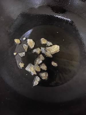 3、锅中放油、冰糖粒烧热变色。