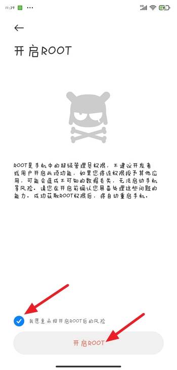 5、勾选【我愿意承担开启ROOT的风险】,并点击【开启ROOT】即可。