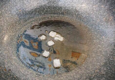 3、红辣椒、蒜、生姜、八角和花椒放油锅里炒香捞出备用。