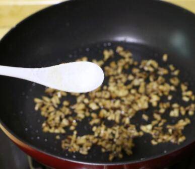7、香菇碎炒熟后加少许盐,炒匀盛出。