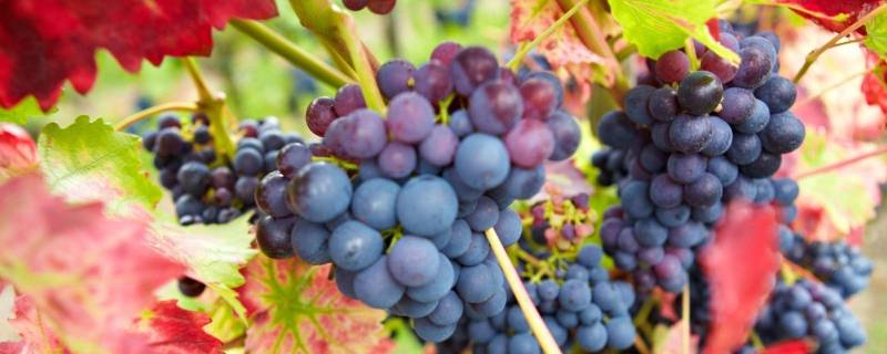 藤上。葡萄为葡萄科葡萄属木质藤本植物,小枝圆柱形,有纵棱纹,无毛或被稀疏柔毛,叶卵圆形,圆锥花序密集或疏散,基部分枝发达,果实球形或椭圆形,花期4-5月,果期8-9月。