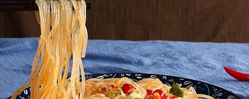 魔芋粉和青菜、肥牛焯水,焯水后的魔芋粉和配菜放入底料的碗中。