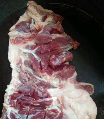 2、用盐、糖、五香粉、白酒均匀涂抹在蹄膀内外,腌制二天,在腌制期间蹄膀要每天翻身。