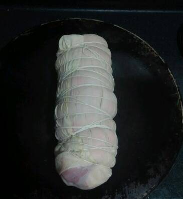 8、经过冷却后的蹄膀已成形,去除外包裹的布,露出真容。