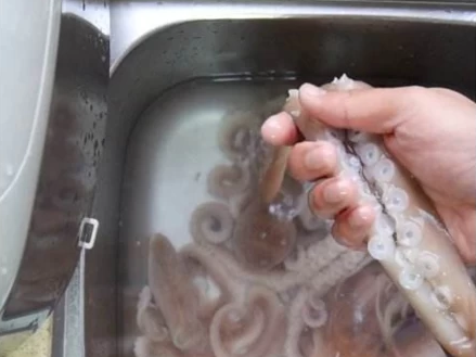 1、从市场上买回来八爪鱼,先用大量的清水冲洗一遍。