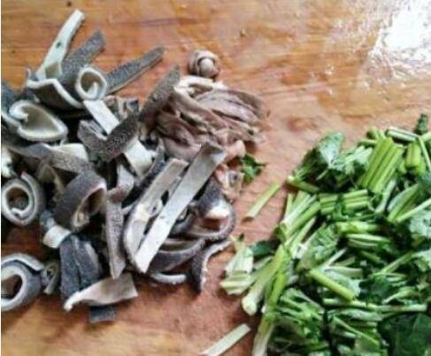 将香菜清洗干净,羊肚切成条;