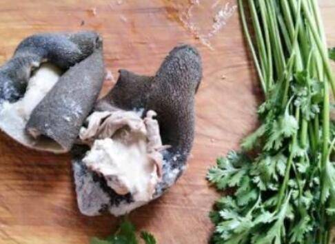 准备食材:羊肚2块、香菜适量、油适量、盐适量、葱1条、胡椒粉适量、酱油适量。
