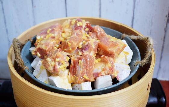 8、蒸锅烧开水后,放入芋头排骨,中火蒸35-40分钟即可。