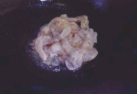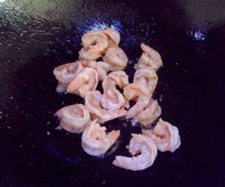 热锅倒油,待油8成热时倒入虾仁。