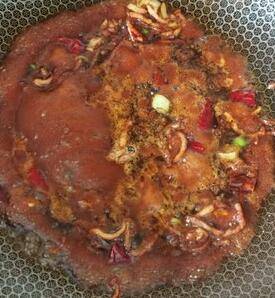 3、锅中加入少许食用油,炒香肉丝,下入辣椒煸炒。