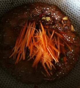 用料:拉皮400克、猪肉丝100克、胡萝卜1根、黄瓜1根、蒜3瓣、香油1勺、生抽4勺、盐5克、糖2勺、香菜2根、干辣椒、葱半根。