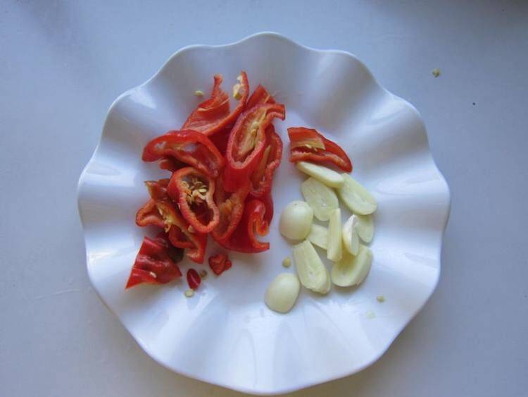 3、大蒜去皮切片。