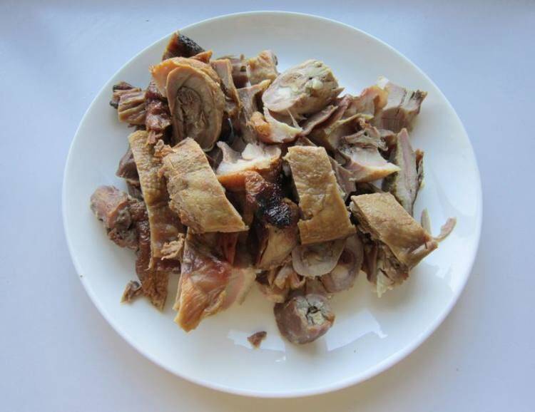 4、卤鸭切块。
