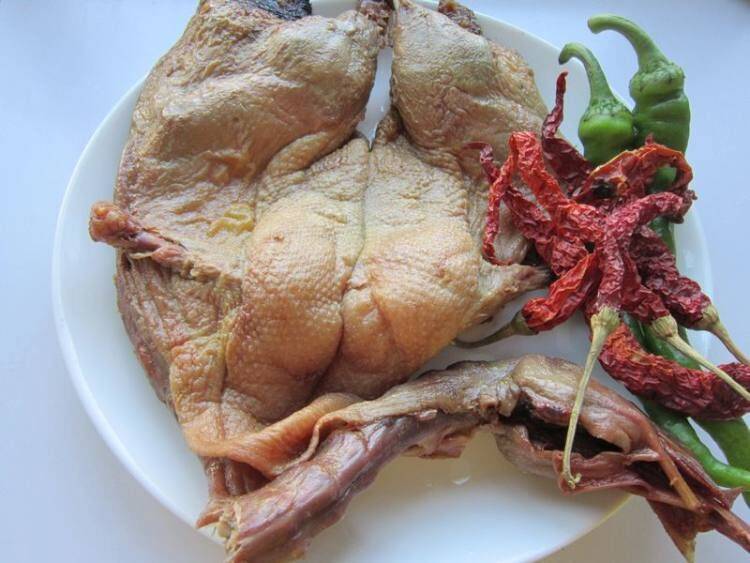1、食材准备:卤鸭、植物油、生抽、花椒粒、青红辣椒、辣皮子、生抽、大蒜。