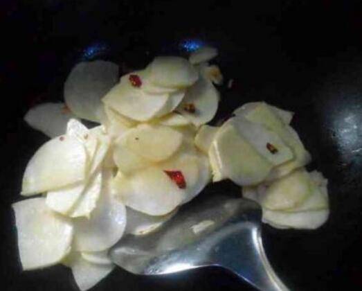倒入地瓜片大火翻炒;