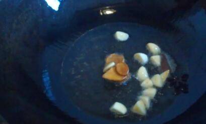 3、起锅,把八角、桂皮、姜蒜爆香。