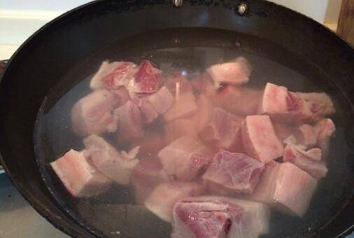 11、加葱姜、八角、桂皮、草果、水,使其没过肉。