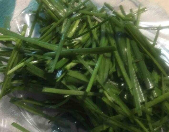 1.韭菜择干净,在盐水里浸泡五分钟,洗净,去掉根部,切段冲洗沥干水分备用。