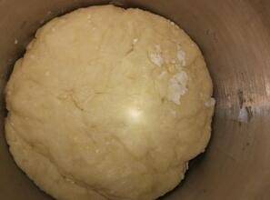 然后加面粉、酵母粉、鸡蛋,揉成面团以后醒发。
